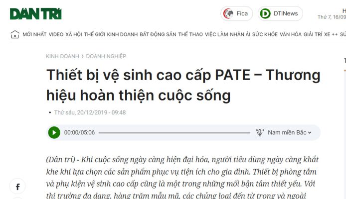 Thiết bị vệ sinh cao cấp PATE – Thương hiệu hoàn thiện cuộc sống...